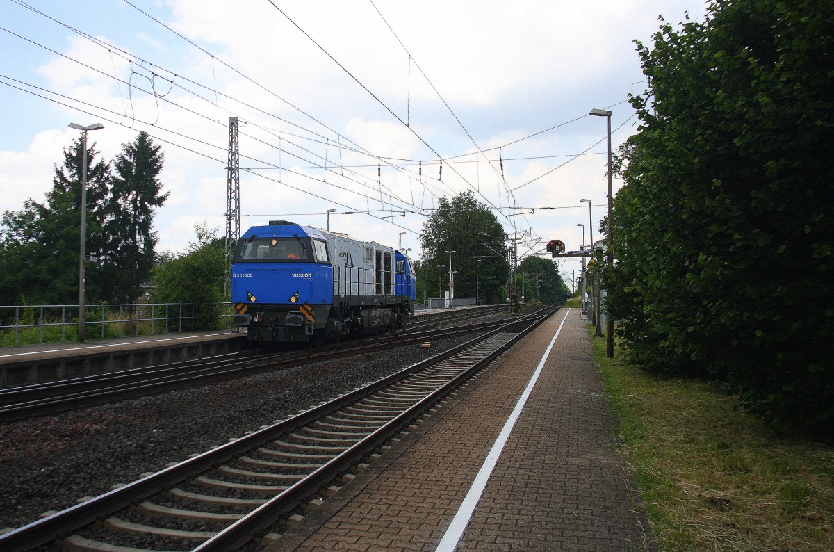 Eine Vossloh Dieselok G 2000 BB kommt als Lokzug aus Neuss nach Aachen-Nord und fährt die Kohlscheider-Rampe hoch nach Aachen-West.