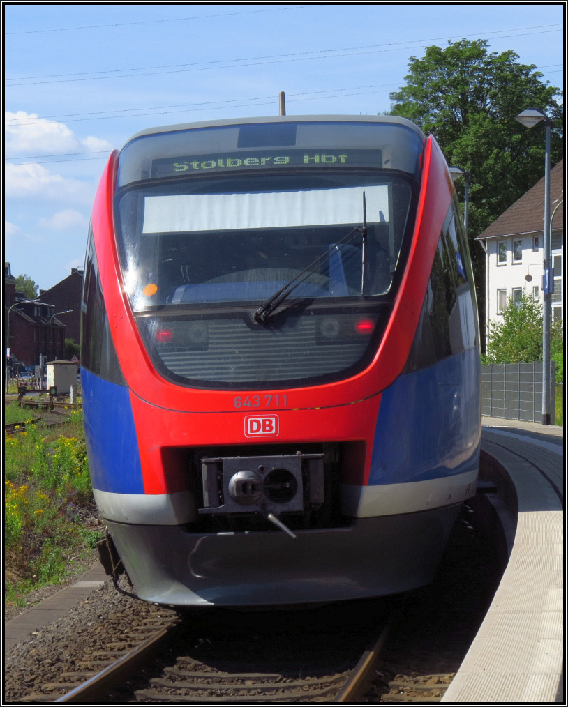 Für den Talent (643 711) heißt es an diesen Sonntag : Pendelverkehr zwischen Stolberg Hbf und der Stolberger Altstadt. Hier ist die Euregiobahn (RB 20) zuhaus.