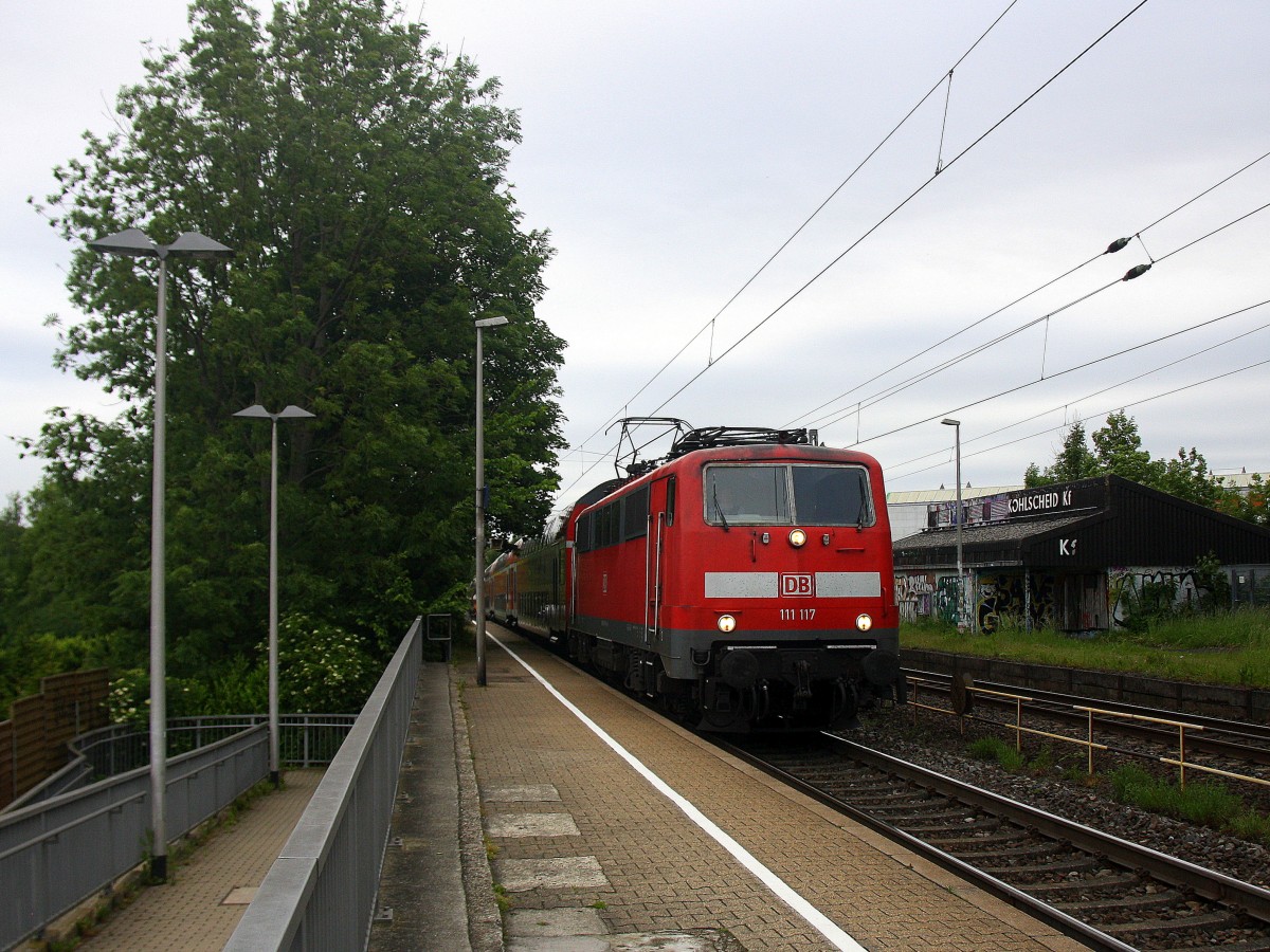 111 117 6 DB kommt die Kohlscheider-Rampe hoch aus Richtung Neuss,Herzogenrath mit dem RE4 aus Dortmund-Hbf-Aachen-Hbf und fährt durch Kohlscheid in Richtung Richterich,Laurensberg,Aachen-West.