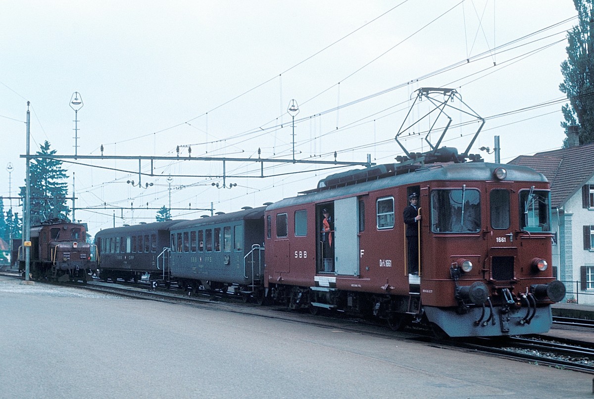 Ein spezieller Zug wurde in Brugg nach dem Tag der offenen Tür rangiert. Be 4/7 12504 in der Mitte.