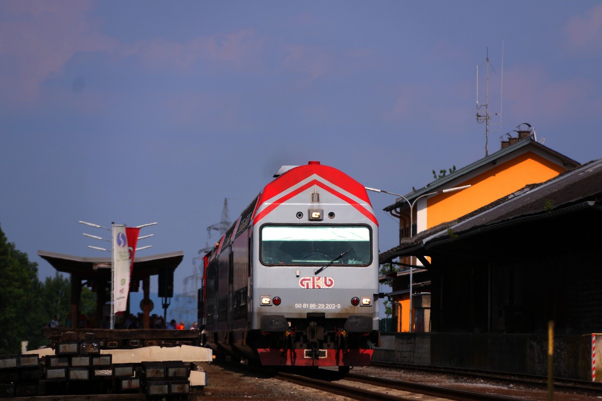 BS 203 geschoben von DH1500.6 aus dem Bahnhof Deutschlandsberg hinaus am 1.Juni2015