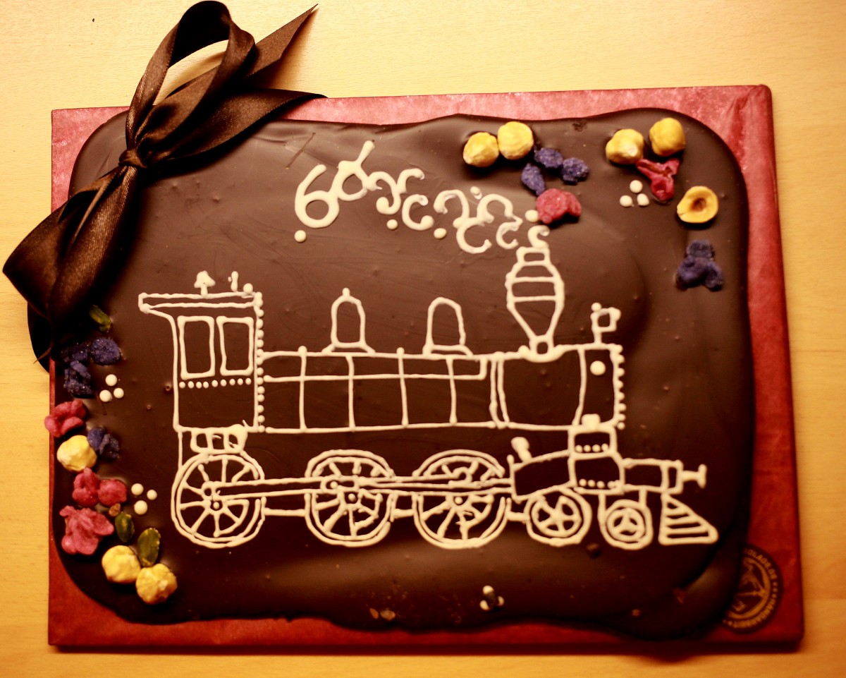 Dem Fotografen gelang dieser Schnappschuß der jüngsten in Deutschland (Erfurt) hergestellten Dampflok mit der vermutlich kürzesten Lebensdauer. Am Wochenende kommen 3 Enkel zu Besuch ! 03.06.2015 21:26 Uhr Schokolok in Radebeul.