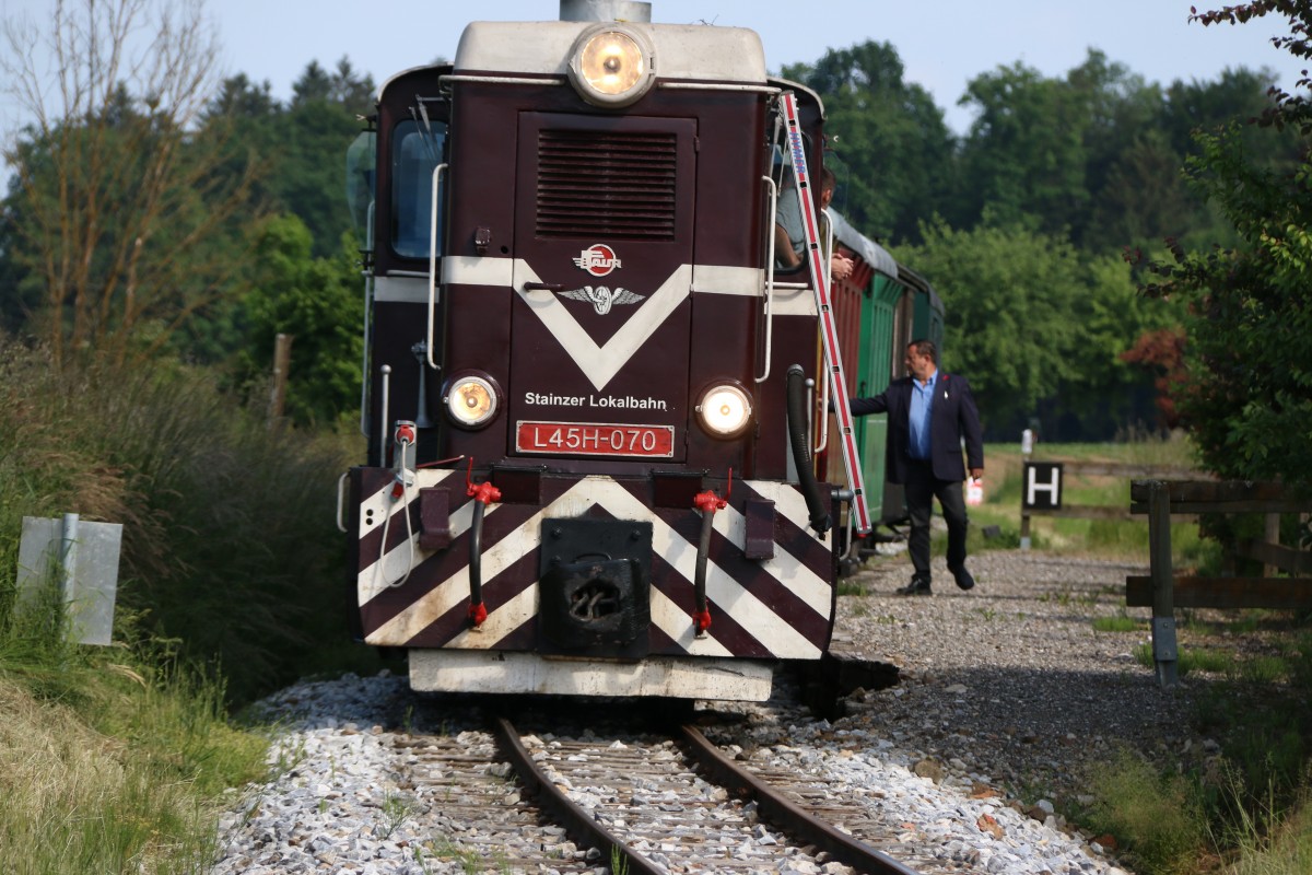 L45H070 kam am 28.05.2015 in Stainz zum Einsatz . Hier zu sehen in der Halte und Ladestelle Herbersdorf