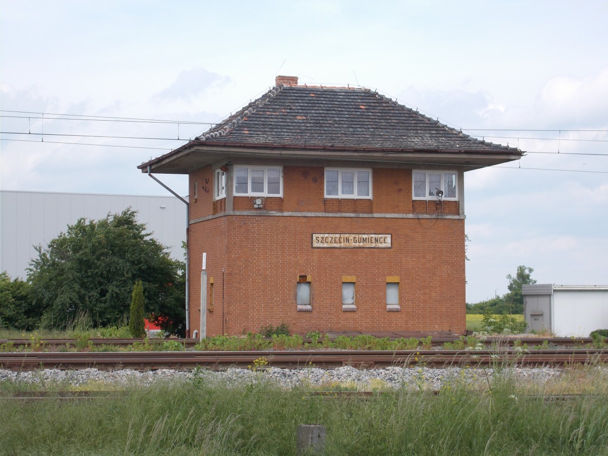 Polnisches Stellwerk Gm2 am südlichen Ende Richtung Deutschland in Szczecin Gumience am 31.Mai 2015.