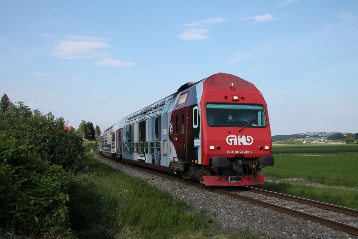 Personenzug Begegnung in Deutschlandsberg am 1.06.2015 . Ausserplamäßig wurde R8565 als Dosto geführt
