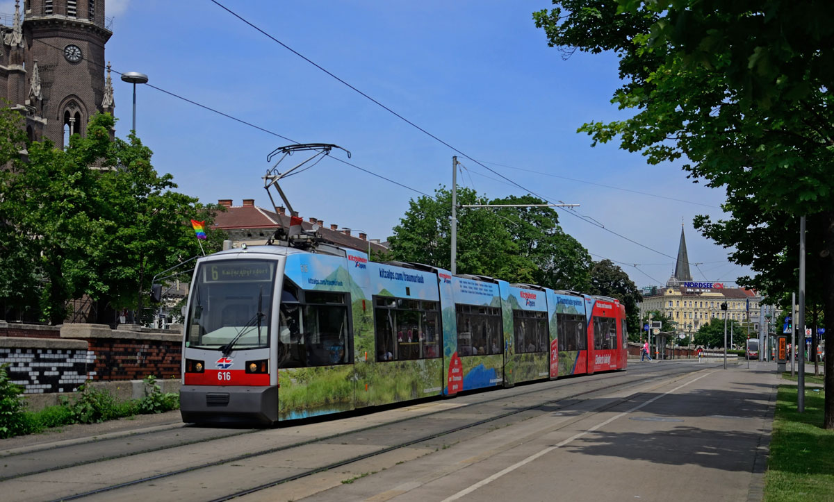 ULF B 616 Vollwerbung für Kitzbühler Alpen als Linie 6 am Mariahilfer Gürtel, 01.06.2015.