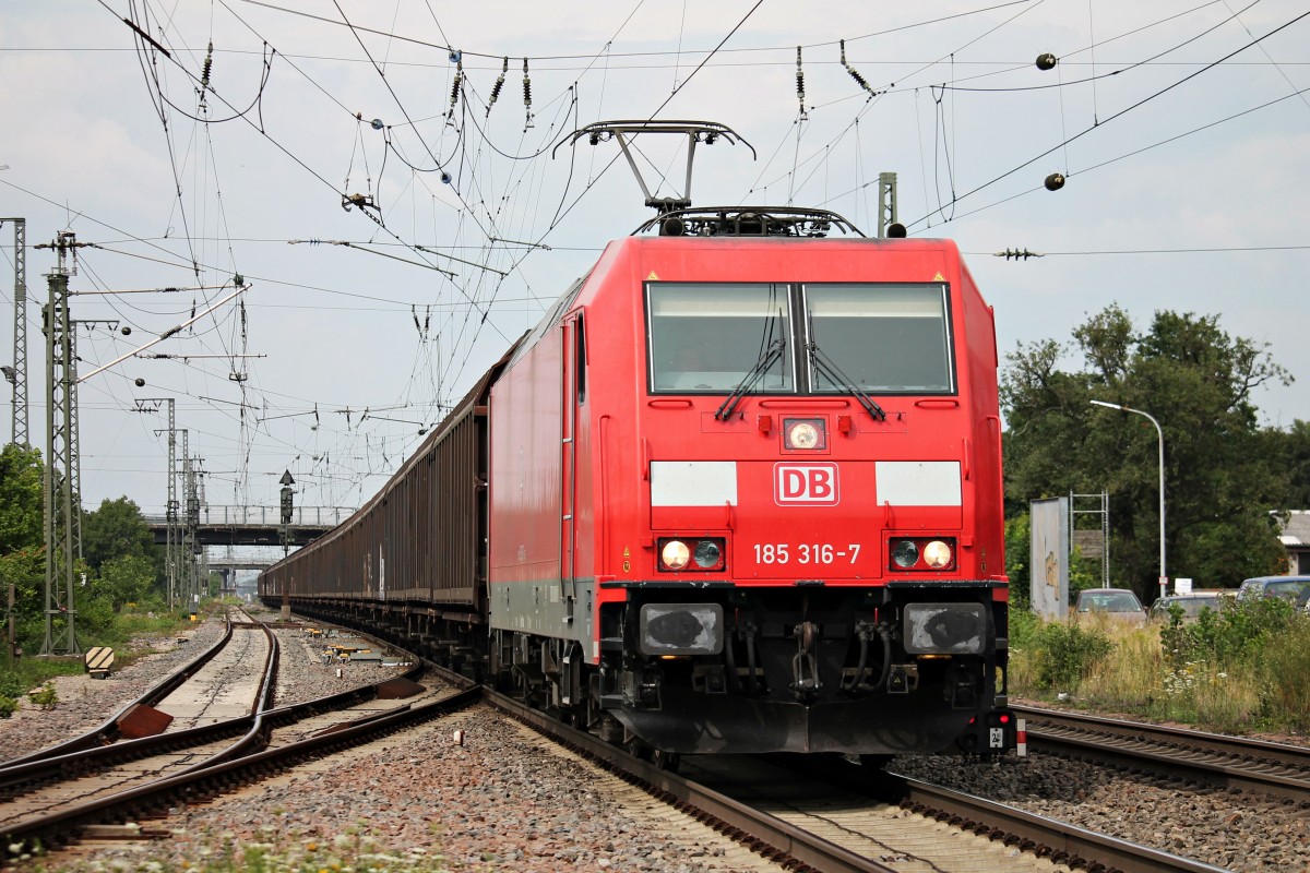 185 316-7 am 23.07.2014 mit einem Redbull-Zug nach Bludenz in Müllheim (Baden).