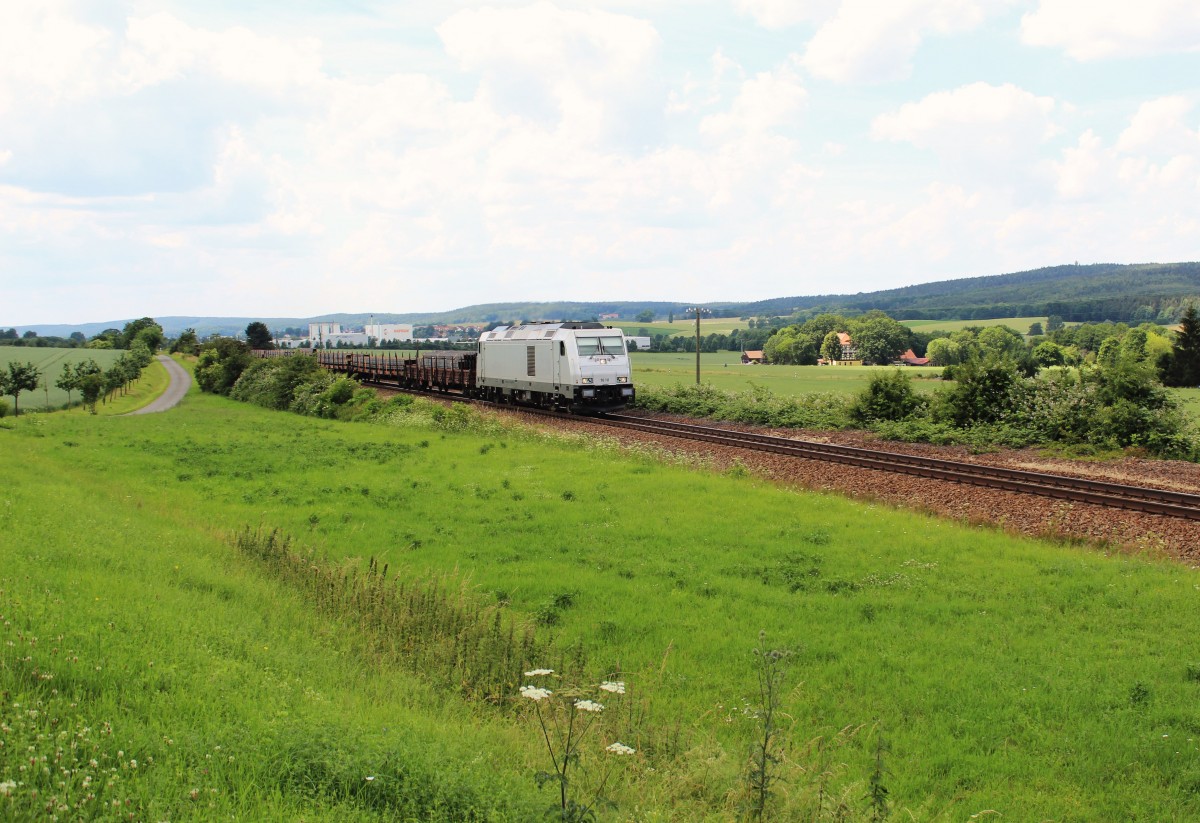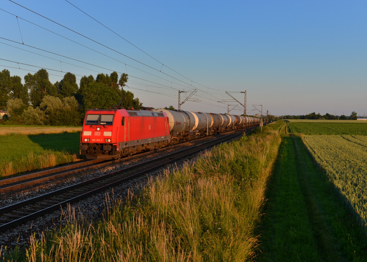 185 359 mit einem Kesselzug am 24.06.2015 bei Plattling.