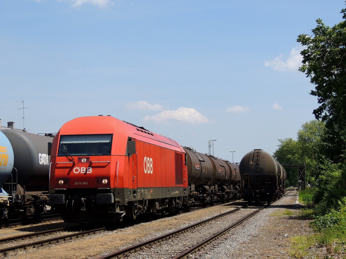 2016 064-6 mit GZ47850, während des Triebfahrzeugführerwechsels in Ried i.I.; 150529