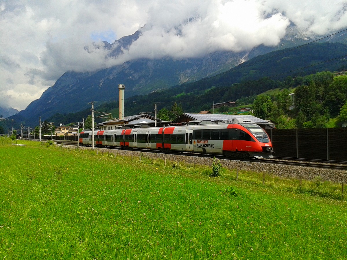 Hier noch einmal ein Nachschuss von REX 1507 (Innsbruck Hbf - Salzburg Hbf) vor der Haltestelle Pfarrwerfen. (28.5.2015)