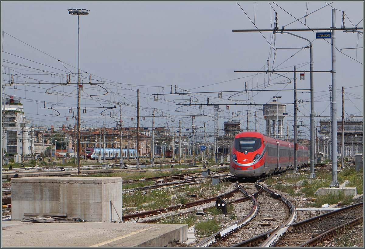 Der FR 9631 erreicht von Torino kommend Milano Centrale. Der ETR 400 "Frecciarossa 1000" wird zehn Minuten später Milano Richtung Roma verlassen.
