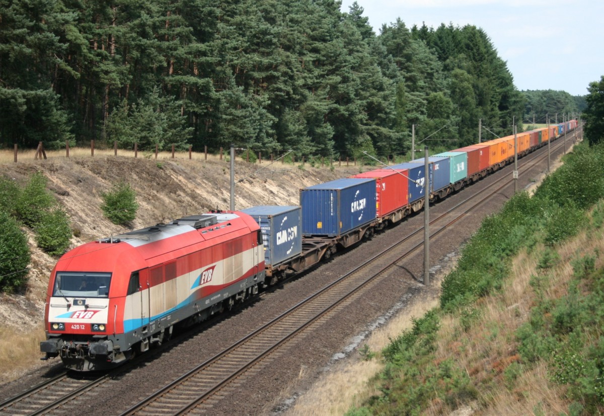 EVB 420 12 mit DGS 83857 (MWB, Hamburg-Waltershof–Bremen-Grolland) am 01.08.2013 zwischen Maschen Rbf und Jesteburg