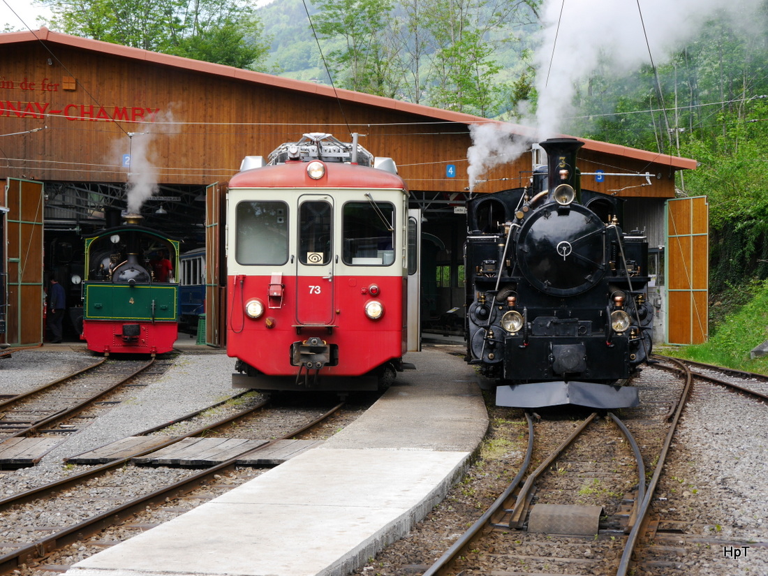 Goldenpass CEV - Fotoextrafahrt für Bahnforum.ch mit den Zahnradtriebwagen BDeh 2/4 73 zu Besuch bei der Museumsbahn Blonay - Chamby am 16.05.2015