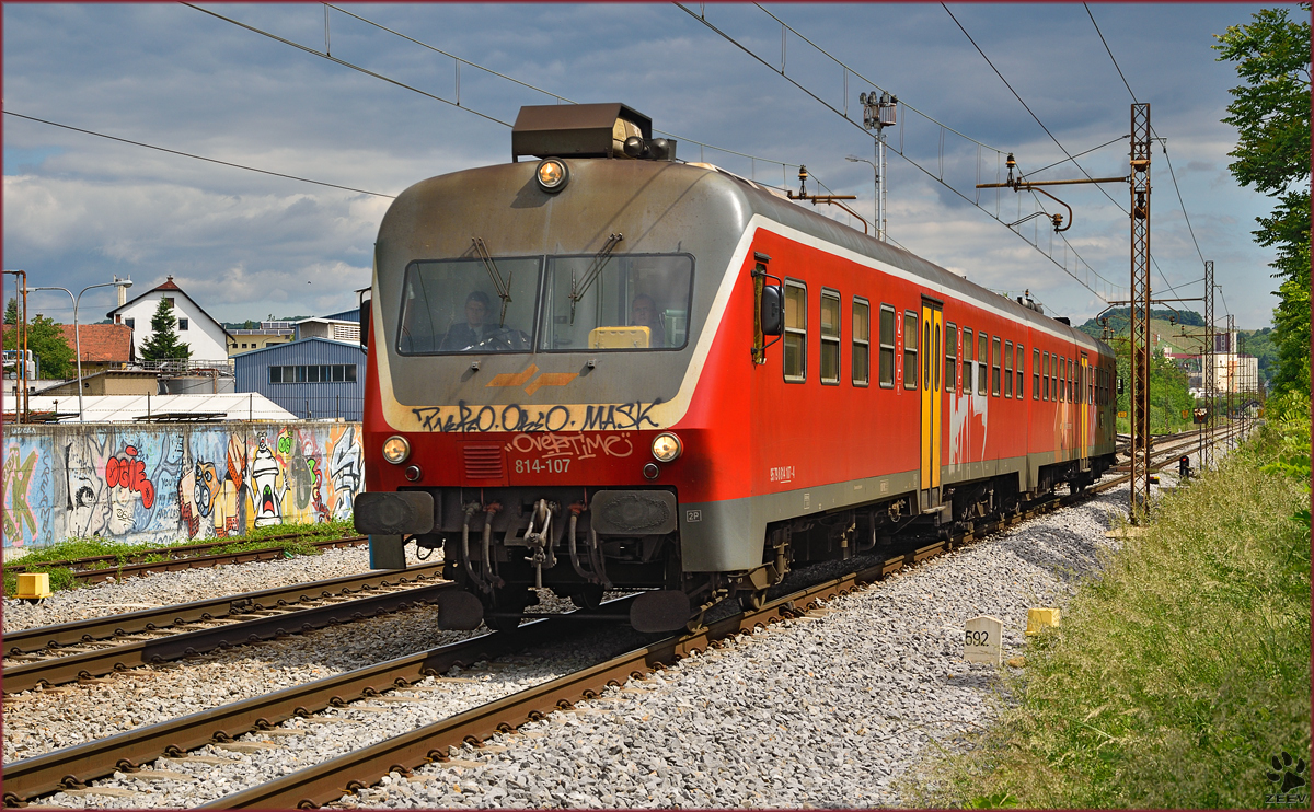 SŽ 814-107 fährt durch Maribor-Tabor Richtung Ormož. /27.5.2015