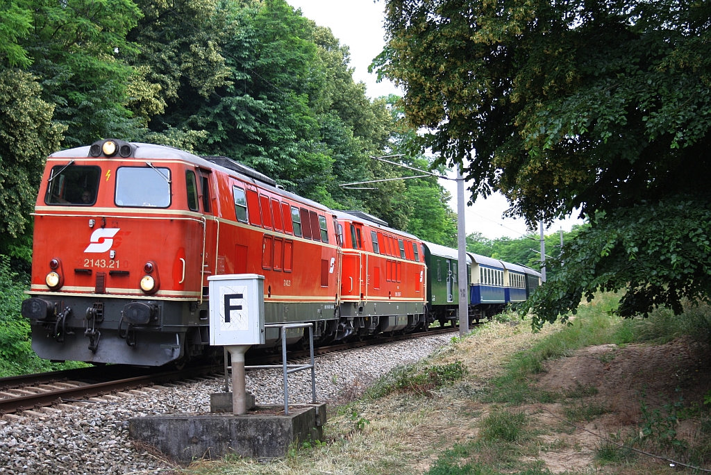 WLB 2143.21 und NLB 2143 070-7 mit dem SLP 34468 am 27.Juni 2015 bei Ladendorf.