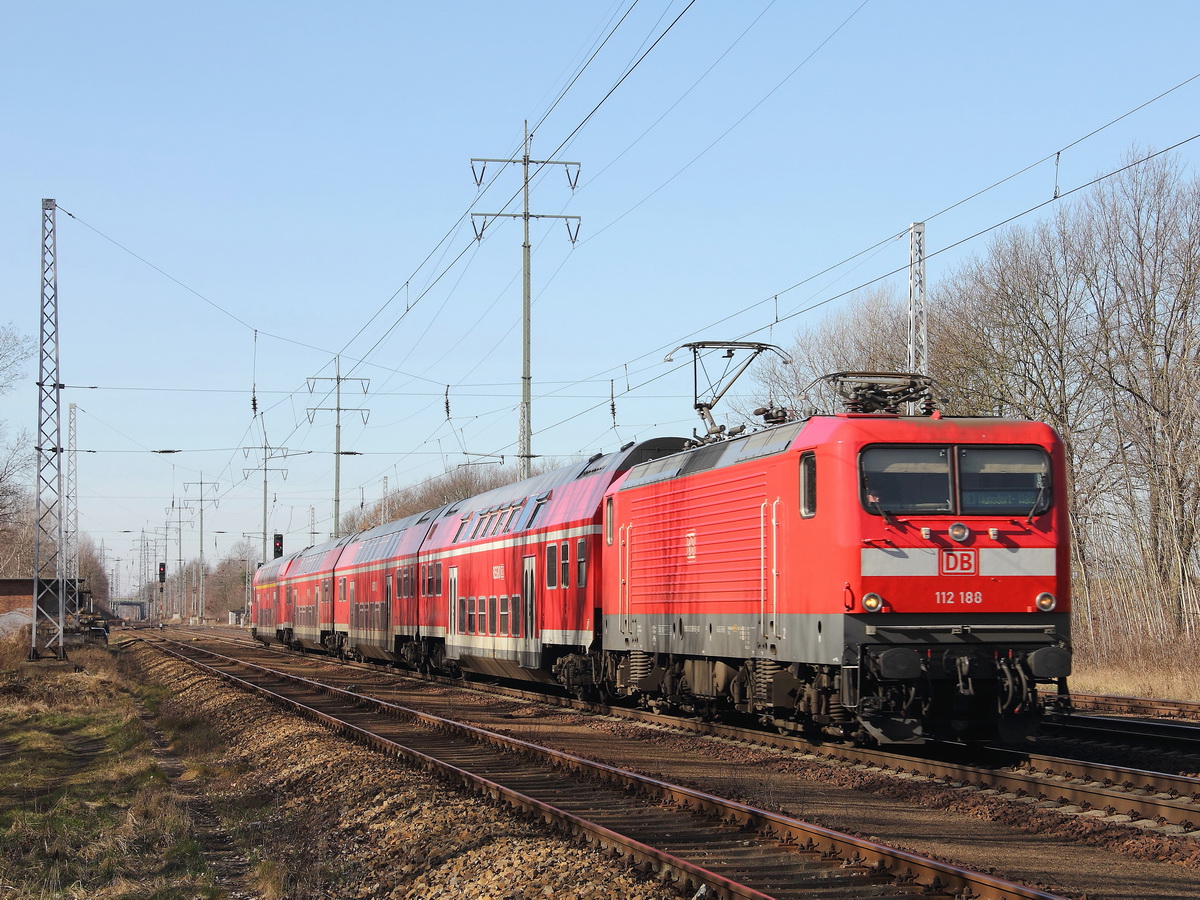08. März 2015 - 112 188 mit dem RE 3 nach Wünsdorf-Waldstadt auf dem Berliner Außenring bei Diedersdorf.