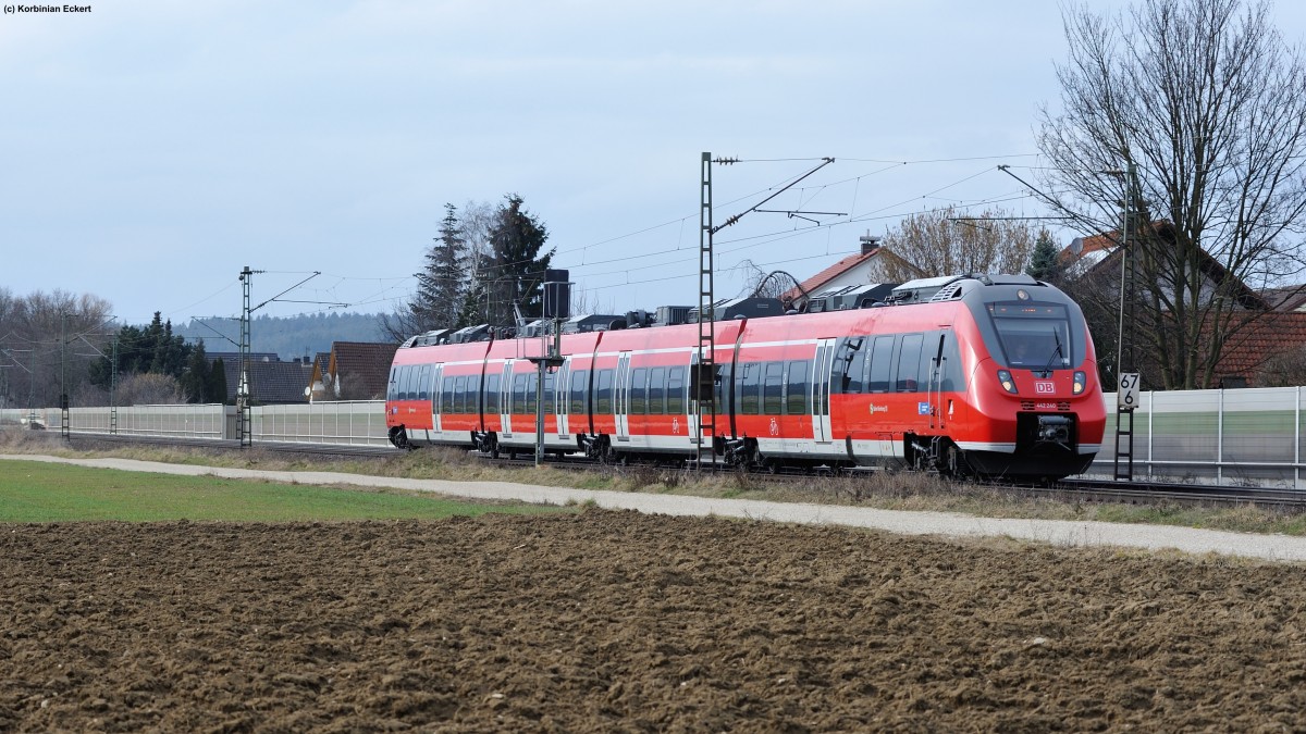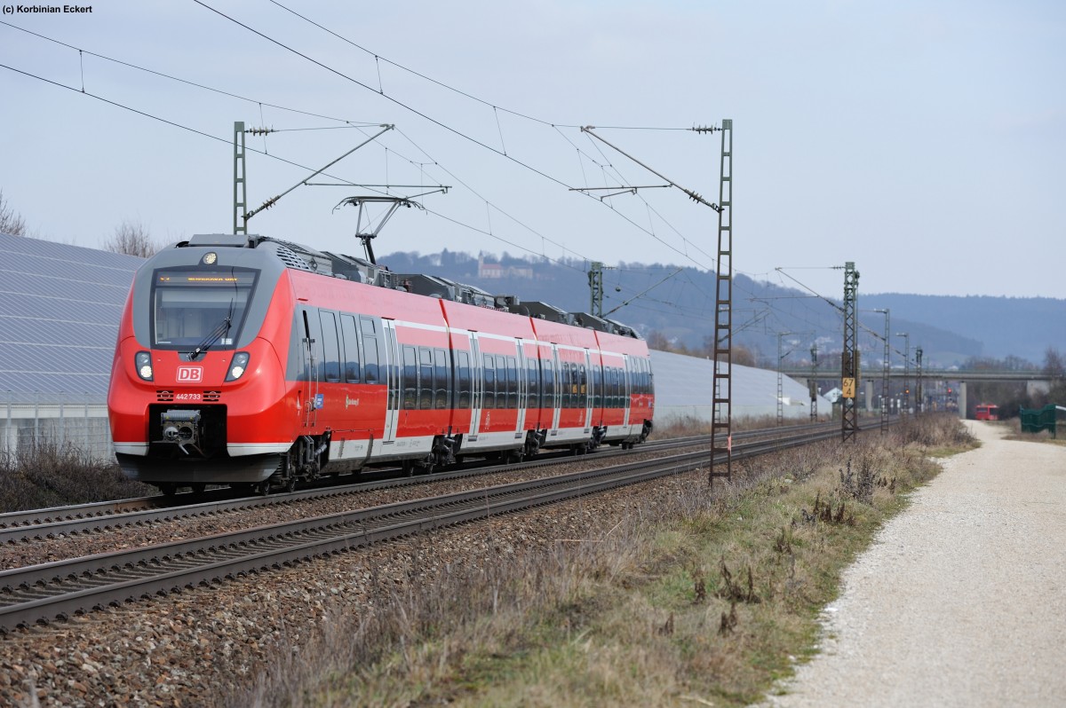 442 733 mit der S4 39350 nach Nürnberg Hbf bei Pölling, 03.03.2015