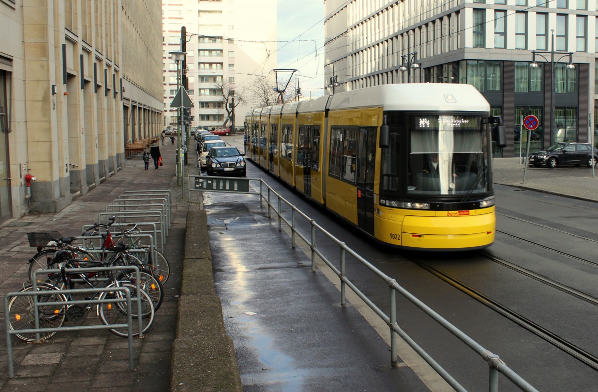 Berlin BVG SL M4 (Bombardier-GT8-11ZRL 9022) Bernhard-Weiss-Strasse am 1. März 2015.