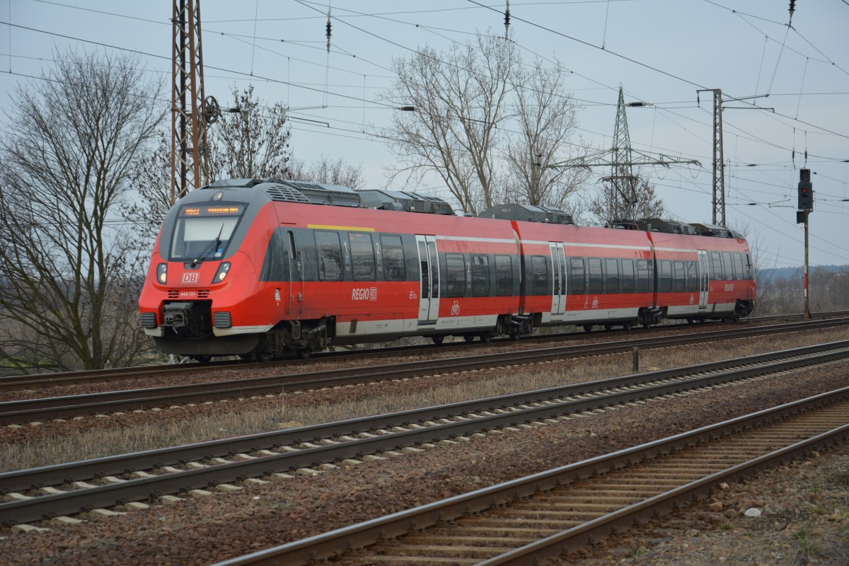 442 622 / 442 122 als RB 22 in Richtung Königs Wusterhausen über Flughafen Berlin Schönefeld am 08. März 2015 auf dem südlichen Berliner Außenring.