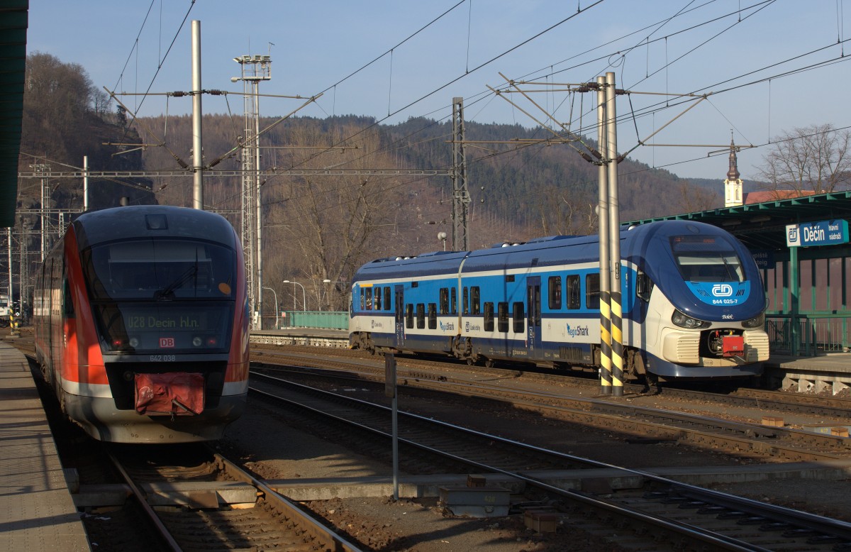 Ein Desirio und ein Regio Shark in Decin.07.03.2015 15:45 Uhr.
