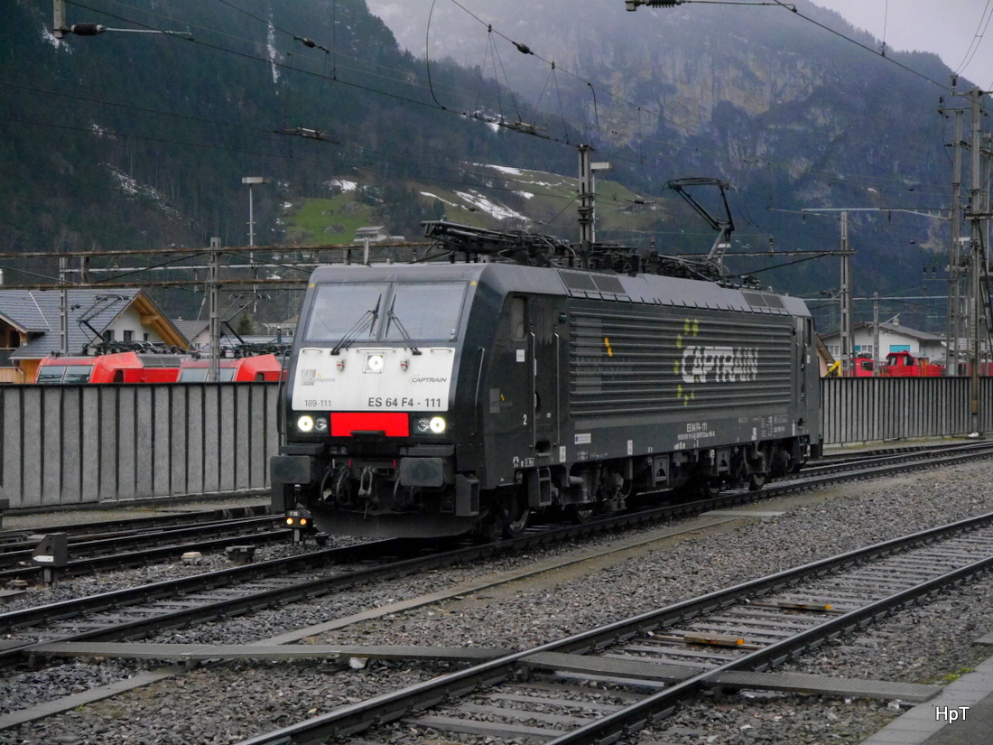 MRCE / CAPTRAIN - Lok ES 64 FA 189 111 bei Rangierfahrt im Bahnhof Erstfeld am 27.02.2015