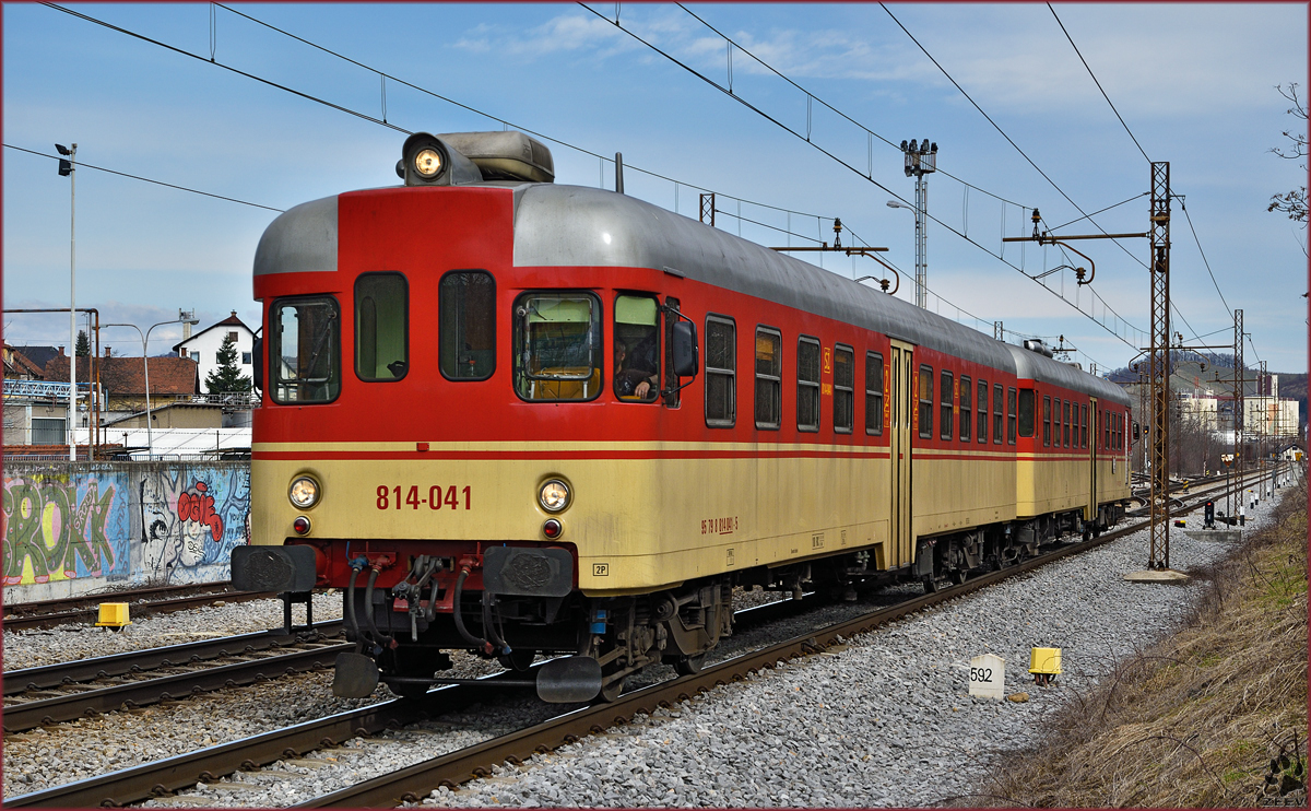 SŽ 814-041 fährt durch Maribor-Tabor Richtung Ormož. /5.3.2015