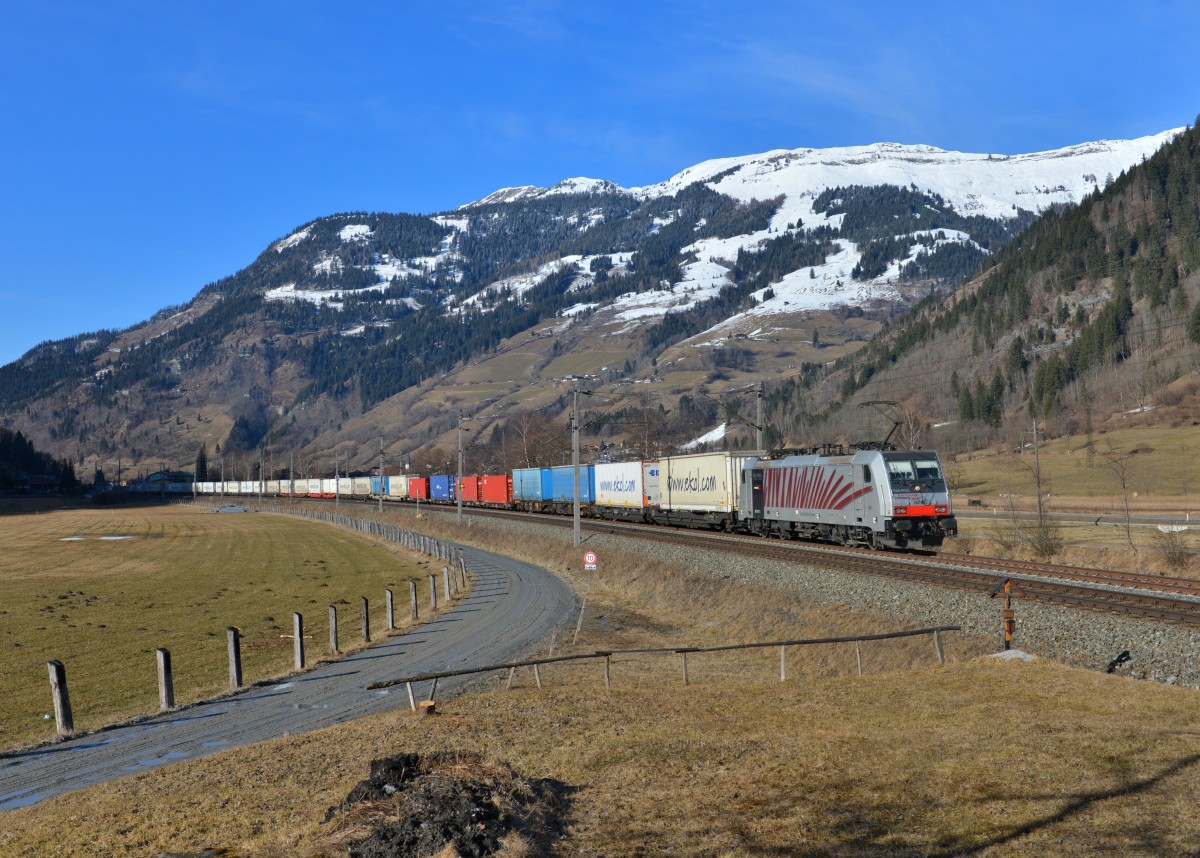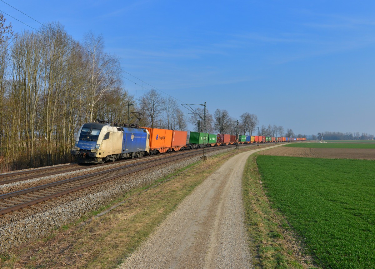 182 520 mit einem Containerzug am 23.03.2015 bei Langenisarhofen.