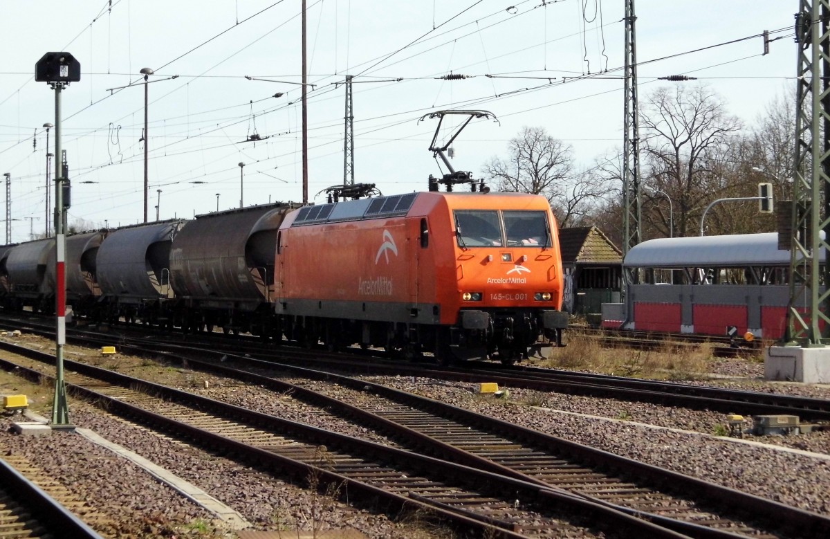 Am 22.03.2015 kam die 145-CL001 von ArcelorMittal aus Richtung Berlin nach Stendal und fuhr weiter in Richtung Hannover .