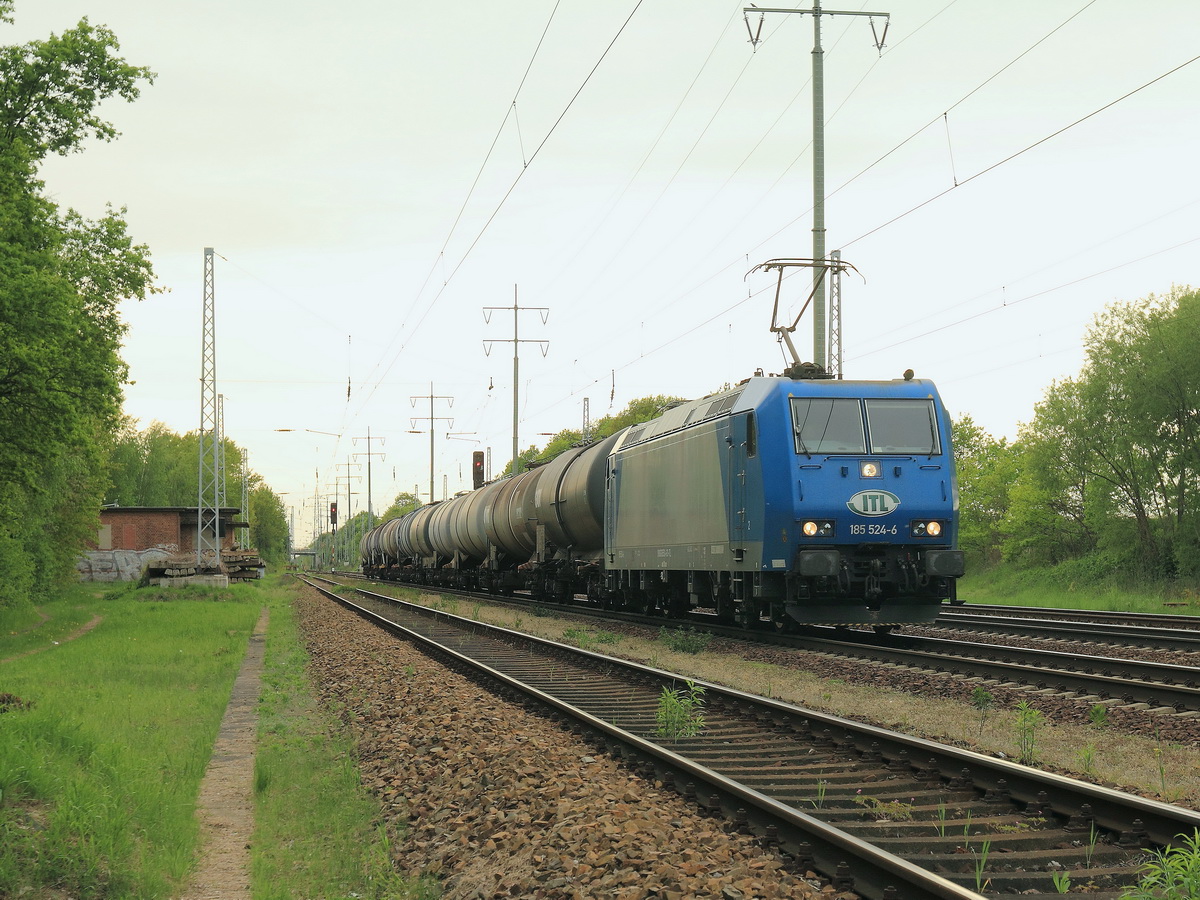 152 020-4 passiert mit einem Kesselwagenzug am 11. Mai 2015 den Ort Diedersdorf .
