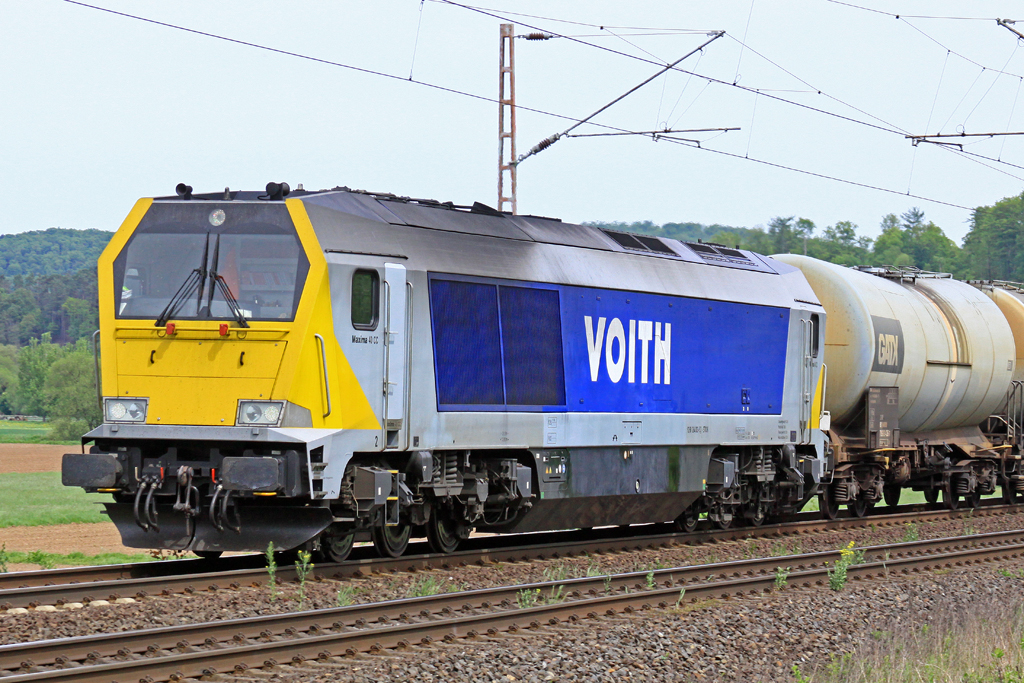 VOITH Maxima 40 CC mit Kesselwagen am 11.05.2015 13:00 nördlich von Salzderhelden in Richtung Göttingen