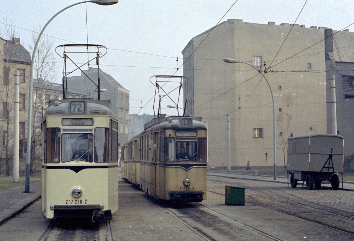 Berlin (Ost) BVB SL 72 (Sw/LEW 217 226) / SL 49 (Sw/LEW 217 059) Mitte, Grosse Präsidentenstrasse am 17. Februar 1974.