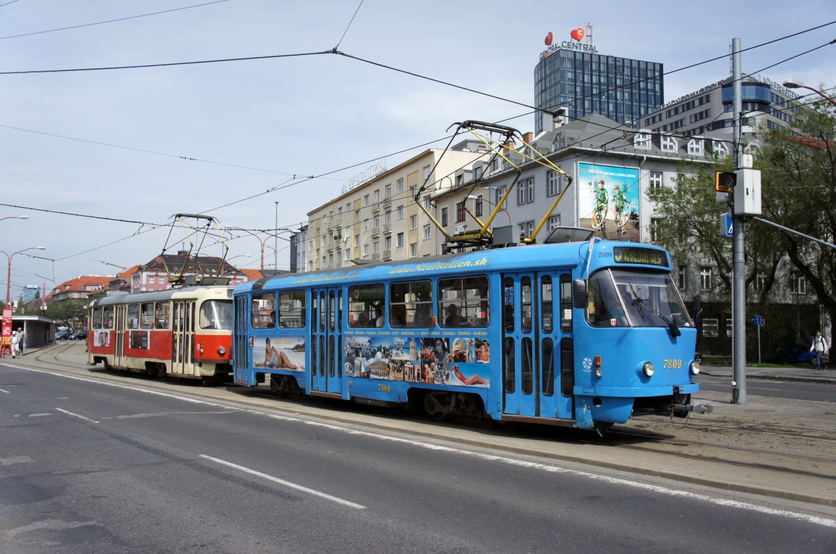 Slowakei / Straßenbahn Bratislava: Tatra T3SUCS - Wagen 7809 ...aufgenommen im Mai 2015 an der Haltestelle  Trnavské mýto  in Bratislava.