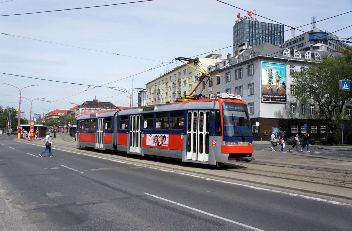 Slowakei / Straßenbahn Bratislava: Tatra K2S - Wagen 7110 ...aufgenommen im Mai 2015 an der Haltestelle  Trnavské mýto  in Bratislava.