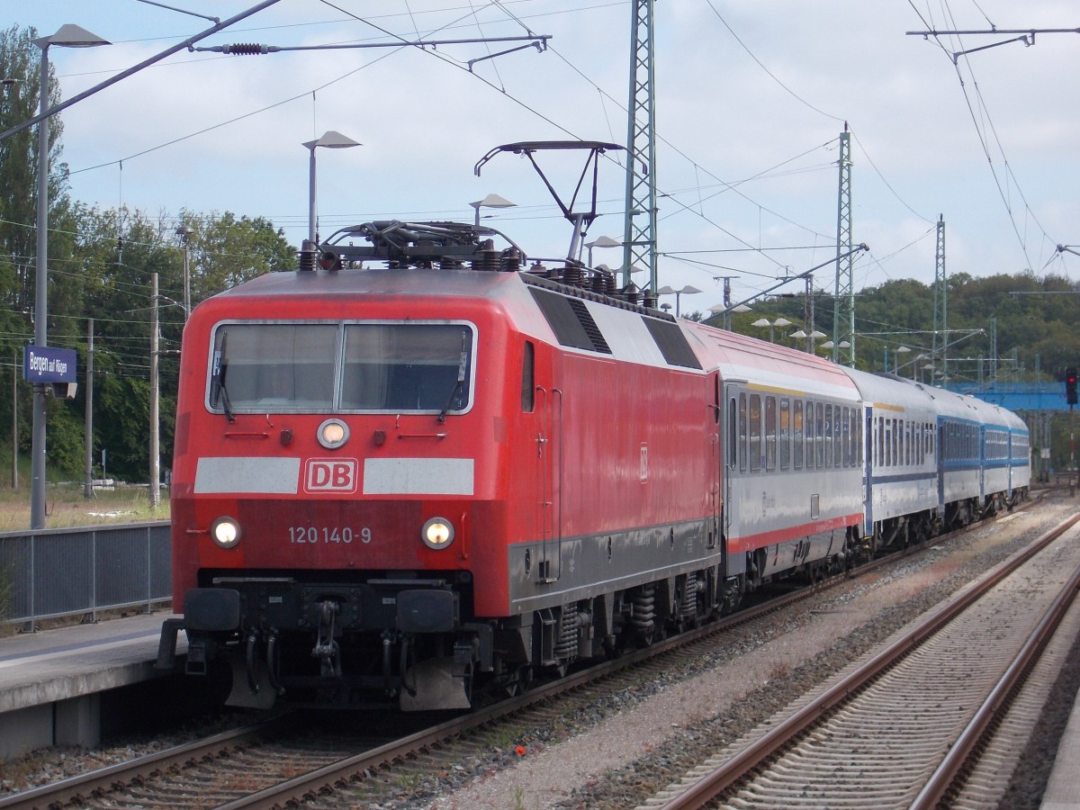 Aus fünf Wagen bestand der Ersatzpark für den EC 378 Binz-Praha hl.n,am 24.Mai 2015,als Dieser von 120 140 in Bergen/Rügen eintraff.
