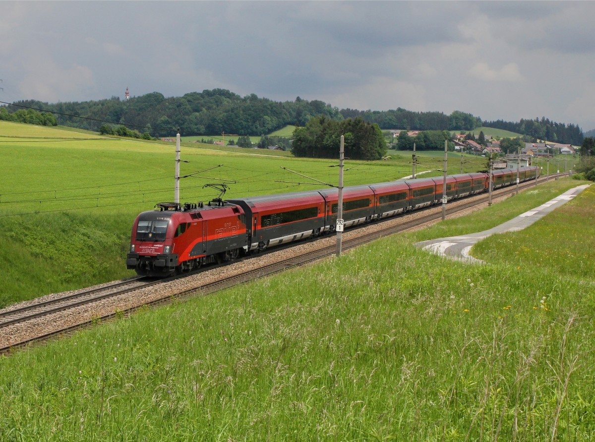 Die 1116 232 mit einem RJ am 25.05.2015 unterwegs bei Köstendorf.