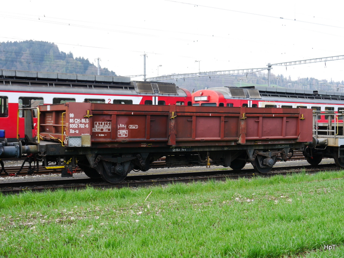 BLS - Dienstwagen Xs-u 99 85 93 52 702-6 abgestellt im Areal der Werkstätte der BLS in Oberburg am 18.04.2015 ... Standort in einem Feld neben dem Areal ..