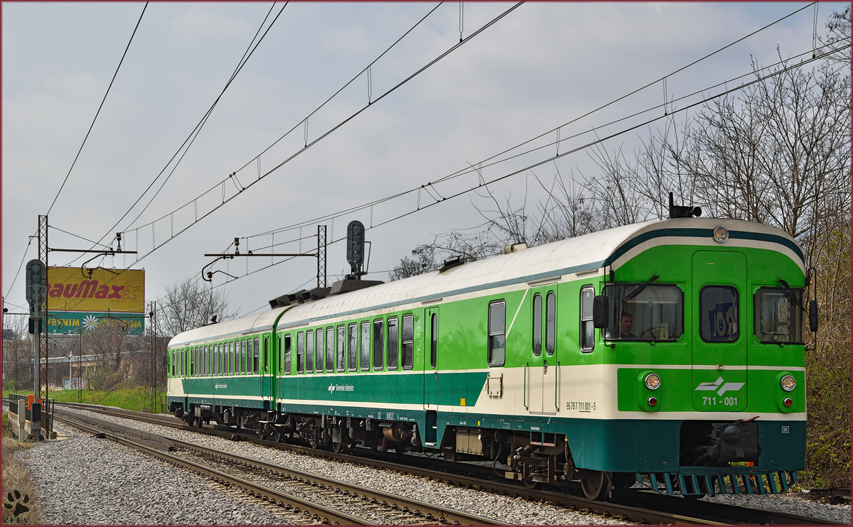 SŽ 711-001 fährt durch Maribor-Tabor Richtung Maribor HBF. /9.4.2015