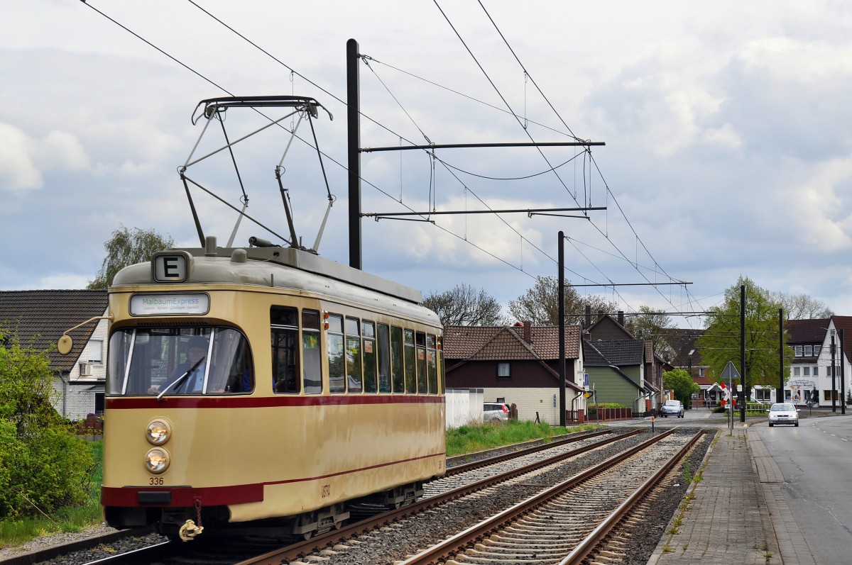 Wagen 336 als MaibaumExpress in Heisede in Richtung Laatzen fahrend(01.05.15)