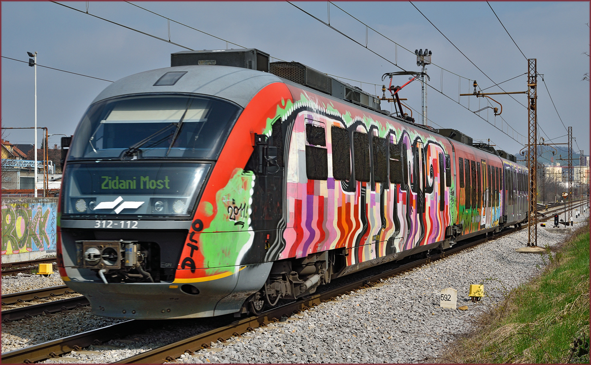 SŽ 312-112 fährt durch Maribor-Tabor Richtung Zidani Most. /9.4.2015