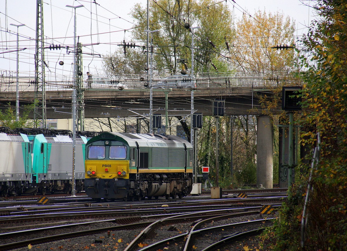 Die Class 66 PB08 von Crossrail fährt als Lokzug von Aachen-West nach Montzen/Belgien bei der Ausfahrt aus Aachen-West in Richtung Montzen/Belgien.