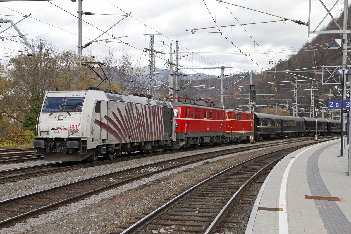 189 666 + 1010 003 + 2143 070 mit Sonderzug in Bruck an der Mur am 11.November.2015.