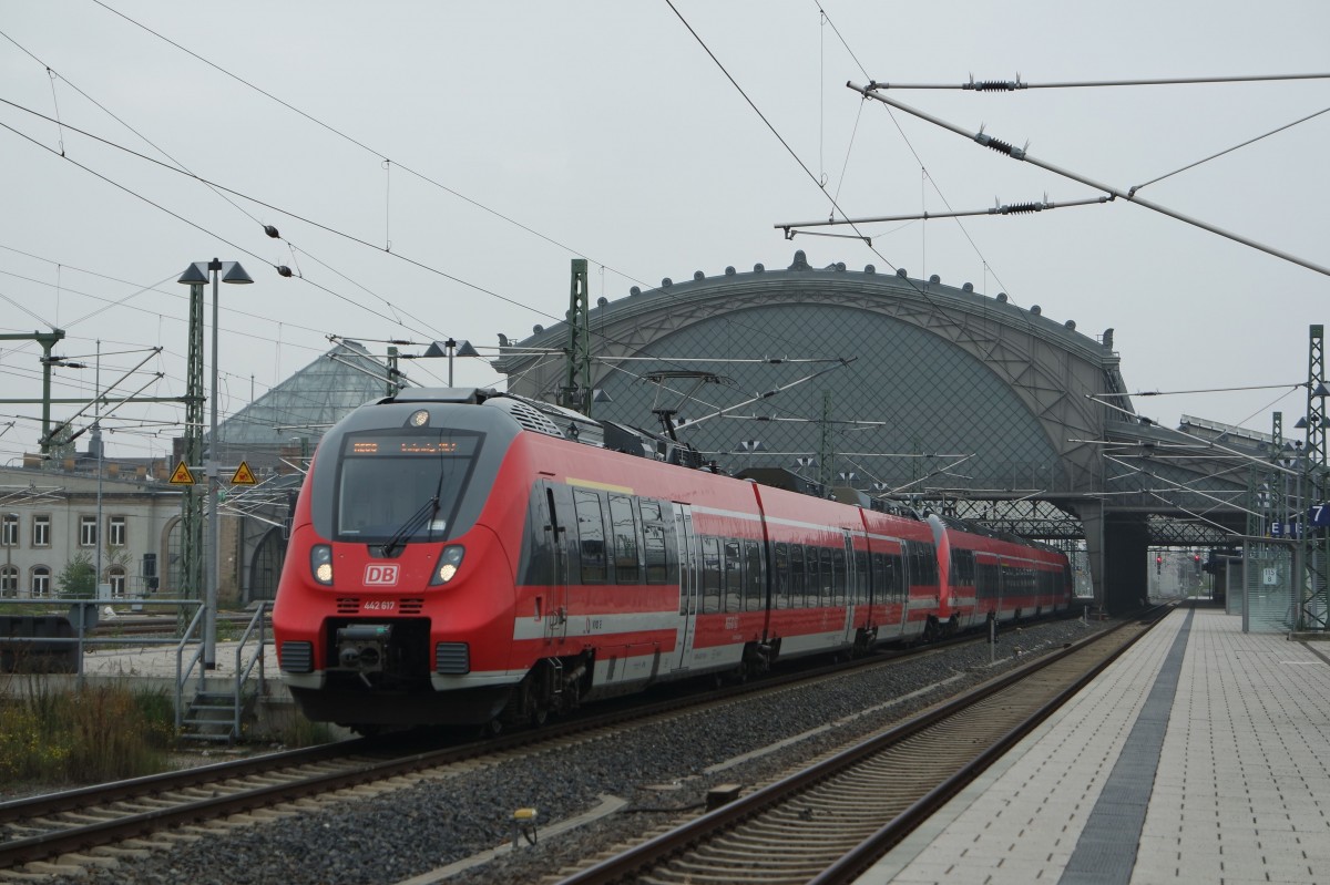 442 617 und 442 314 nach Leipzig(Hbf.)verlässt am 30.10.2015 den Bahnhof Dresden-Neustadt.