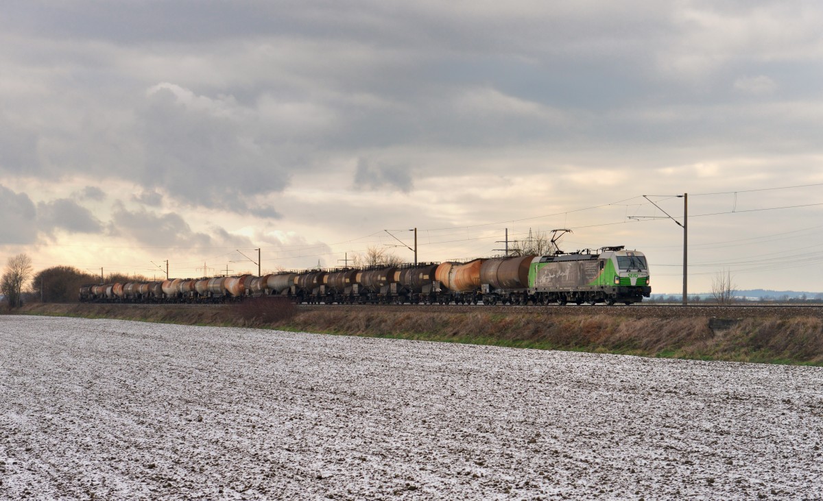 Lok 7 des Prüfcenters Wildenrath (223 061-1) schleppt zwei Testobjekte zu ihrem Besitzer. Der Weg führte sie die KBS 495 entlang Richtung Köln (23.11.15). Falls jemand auch in dieser extrem ungünstigen Perspektive erkennen kann, um was genau es sich bei den beiden Zwischenwagen eines Hochgeschwindigkeitszuges handelt, wäre ich für eine Rückmeldung sehr dankbar.