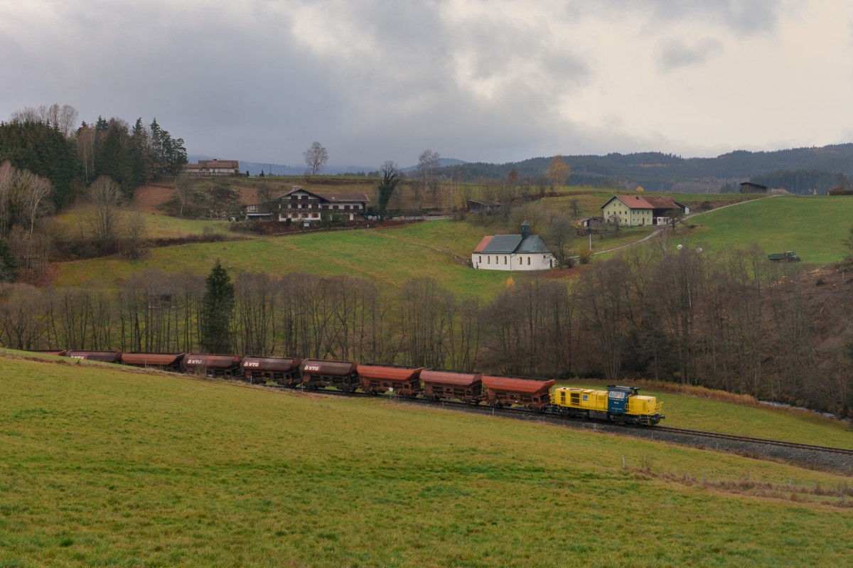 271 020 mit einem Schotterzug am 14.11.2015 bei Ruhmannsfelden.