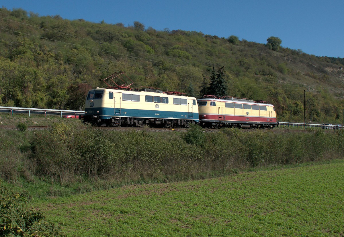 111 001 & E03 001 am 01.10.15 als Tfzf 98341 (Nürnberg-Siegen) bei Karlstadt am Main