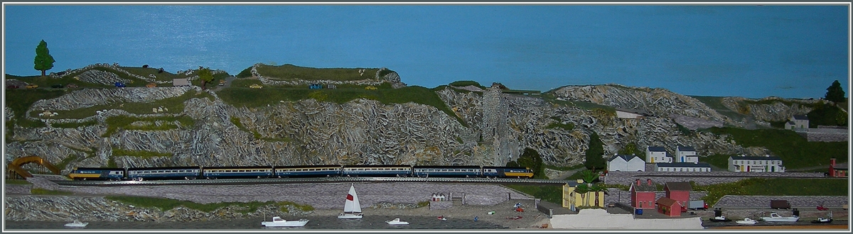 Nur fünf, zwischen zwei Dieseloks der Class 43, eingereihe Mark -III Wagen entsprechen nicht dem Vorbild, noch nicht: Doch ab 2018 wird Abellio solche Züge im innerschottischen Intercity Verkehr einsetzen - und in Micro Brittanien finden schon erste Probefahrten satt.