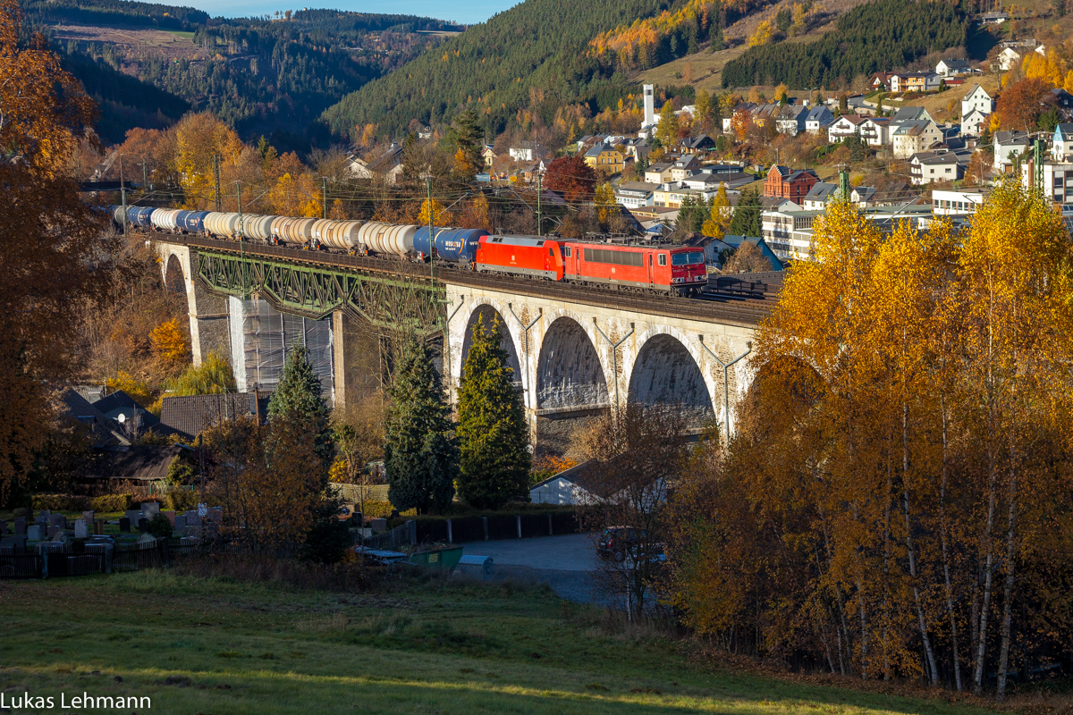 185 180-7 DB Schenker bei Steinbach im Frankenwald am 03.11.2015.