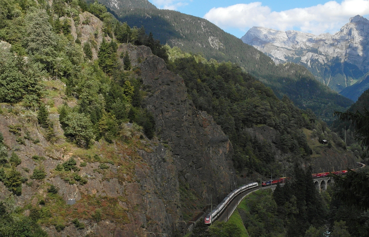 Pech beim Sonne-Wolken-Lotto - Zwischen Meitschligen und Gurtnellen begegnen sich am 01.10.2015 der bergwärts fahrende 'WINNER'-Zug und der von Lugano nach Basel fahrende ICN 676.