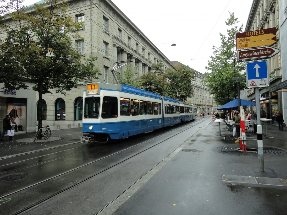 Zürich am 5.10.2013,, 2 Triebwagen Be 4/6, Nr. 2051 führend auf der Linie 13 in der Bahnhofstraße Richtung Albisgürtli