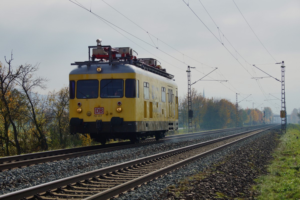 701 017 ein Oberleitungsmesswagen der DB Netz Instandhaltung gesehen am 27.10.15 bei Thüngersheim.